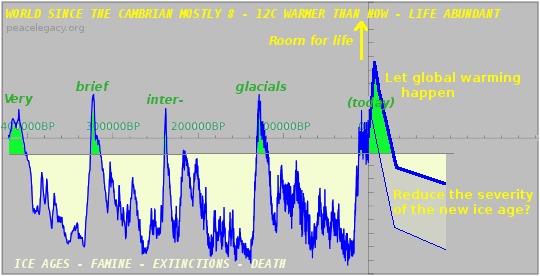 So here's my vision of a wise precautionary principle: take advantage of any heating that human activity is making happen. If industrial activity is pumping up the planet's temperature some degrees, excellent. The IPCC says we are making big changes, but climate realists, more credibly, say we are making only small changes. But big or small, any warming we can organise will forestall the next ice age. By lots (the alarmists) or only a little (climate realists), it all helps.