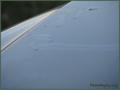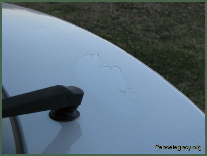 Dust storms, as we have seen, are a wind speed and dryness-related phenomenon. But science is neat because anyone can think about things and examine the world around them, even without complicated equipment, and I enjoy just 'poking around' so to speak. So I went outside and photographed my new car. It was picked up the day before the second dust storm, a bright shiny pearl white. And here it is the day after: